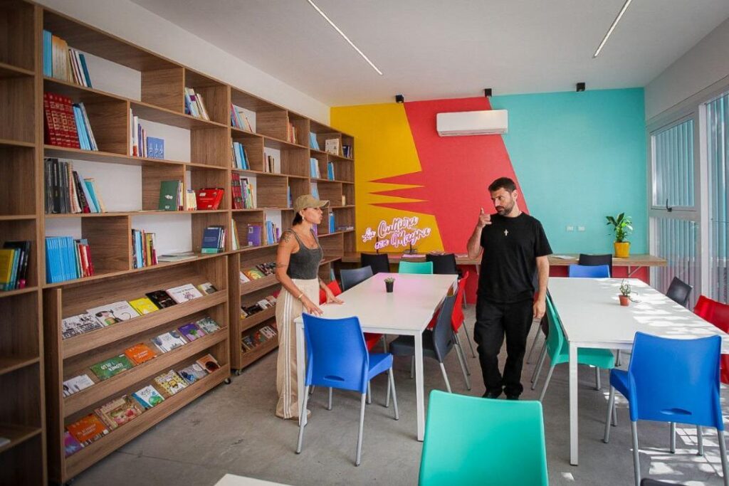 “Es un día de gran alegría. Este espacio con colores, con estos vidrios donde entra el sol, es para ustedes y de ustedes, así que lo tienen que disfrutar y que cuidar mucho. Esta biblioteca, este centro cultural es también para poder generar cada vez más conciencia de lo que significa nuestra patria, de cómo hay que defenderla y valorarla”, señaló Mayra.