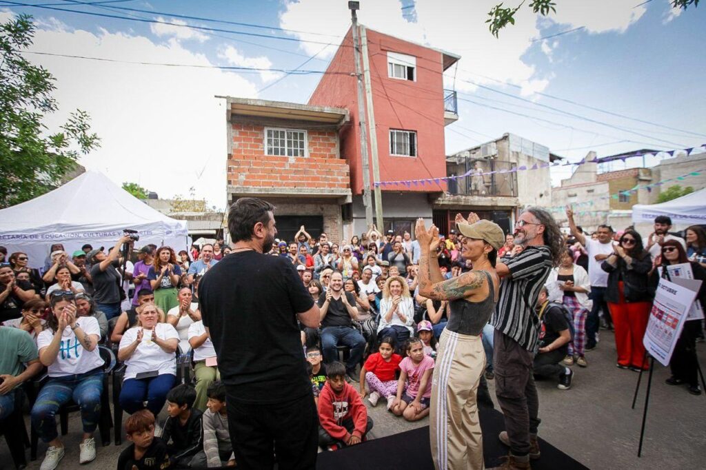 La intendenta de Quilmes, Mayra Mendoza, y el candidato a Diputado Nacional por Fuerza Patria, Juan Grabois, recorrieron este sábado junto a vecinas y vecinos, el nuevo Centro Cultural y Biblioteca IAPI de Bernal Oeste, ubicado en Los Andes y calle 172, donde dialogaron con los presentes y disfrutaron de un show de la orquesta infantojuvenil La Sonora de la IAPI.